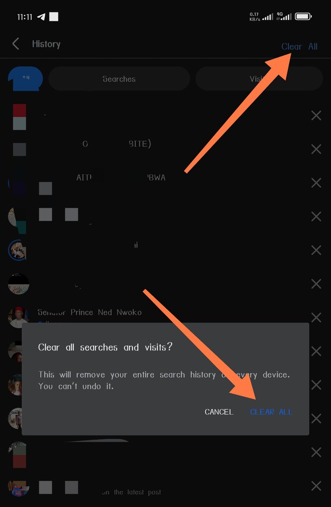 Well, this is almost the same as what is explained above; the only difference is that, on iOS, you have to tap on the Search icon and select See all (or Edit) to view all your recent searches.